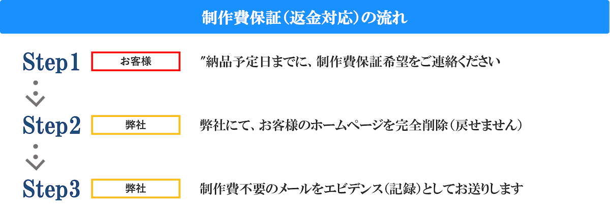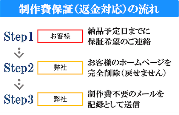 ホームページ制作サービスとして非常に珍しい『制作費の全額保証』をご用意しているので、安心してご依頼いただけます!